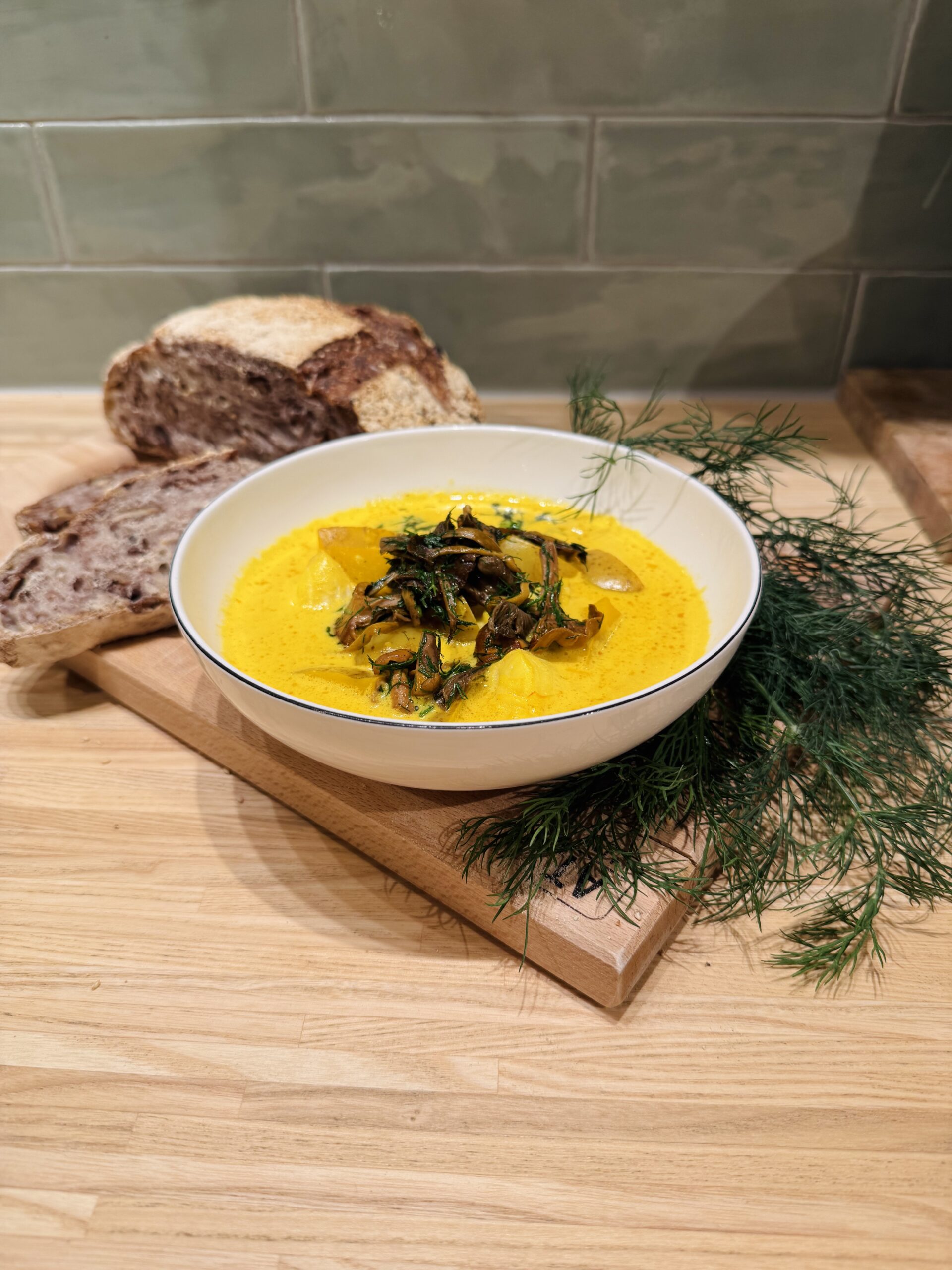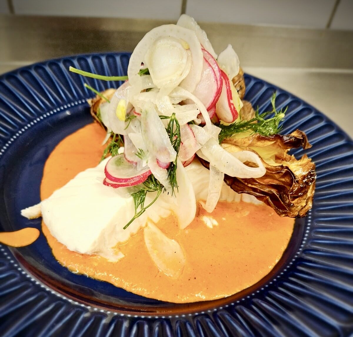 Torskceviche pilgrimsmussla och ramslöksmajo
