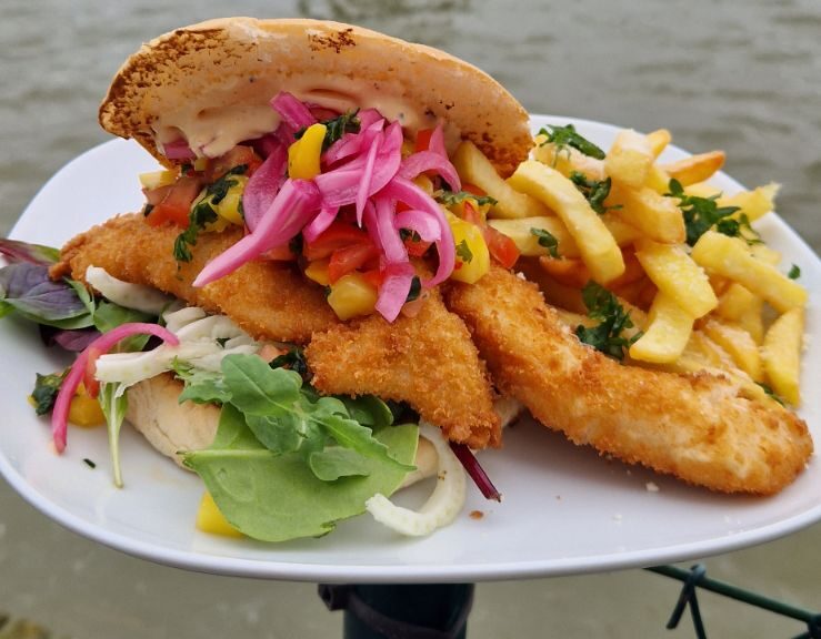 Fiskfiléburgare med srirachamajo och mangosalsa
