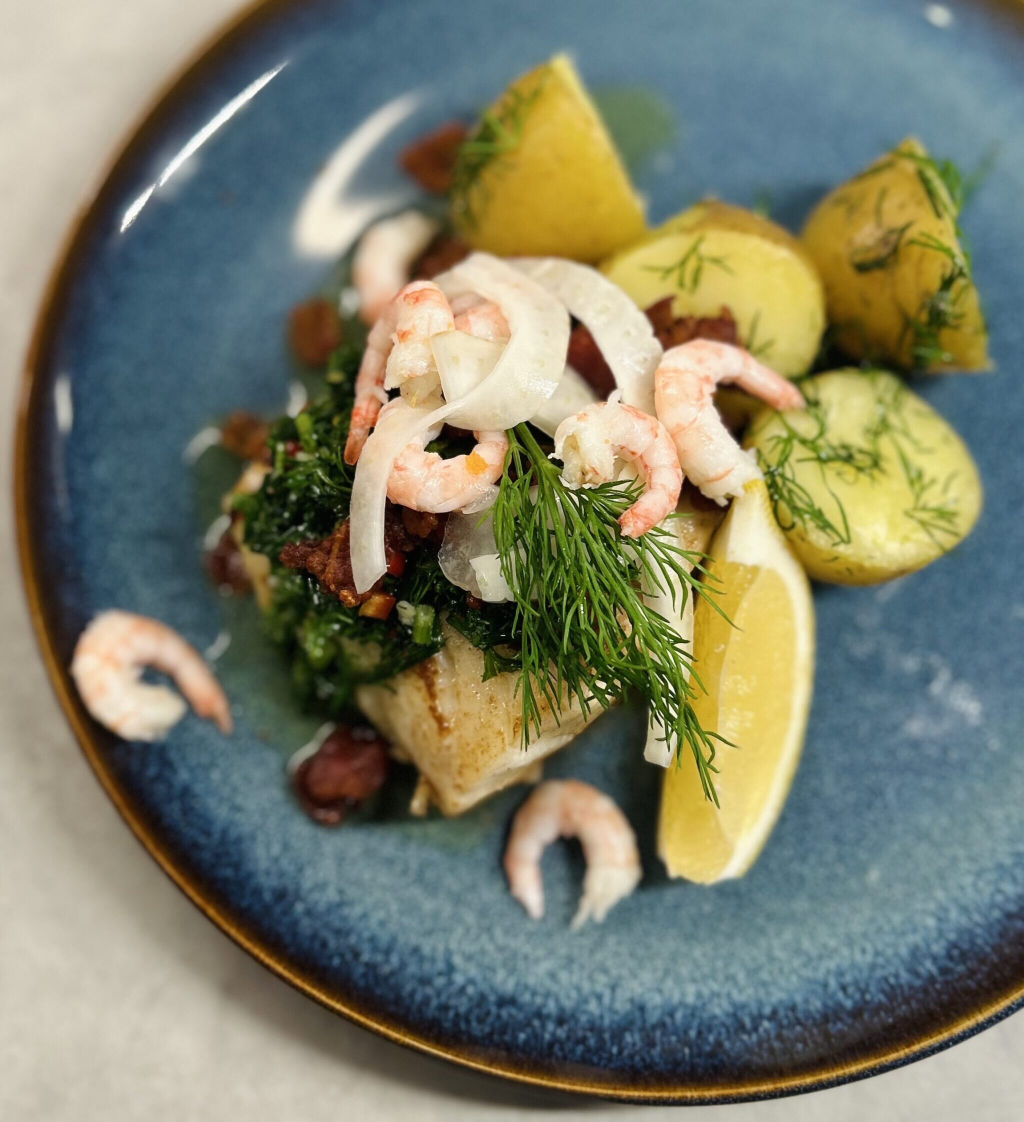Torskceviche pilgrimsmussla och ramslöksmajo