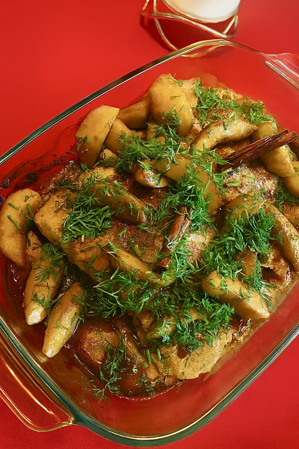 Bakad vitfiskfilé med parmesan- och persiljebakt potatis
